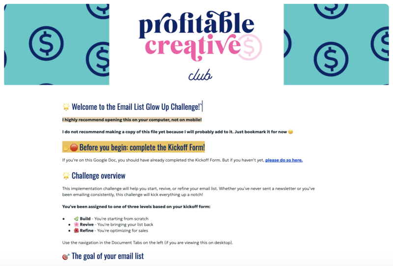 The Email List Glow Up is happening inside the Profitable Creatives Club monthly membership.